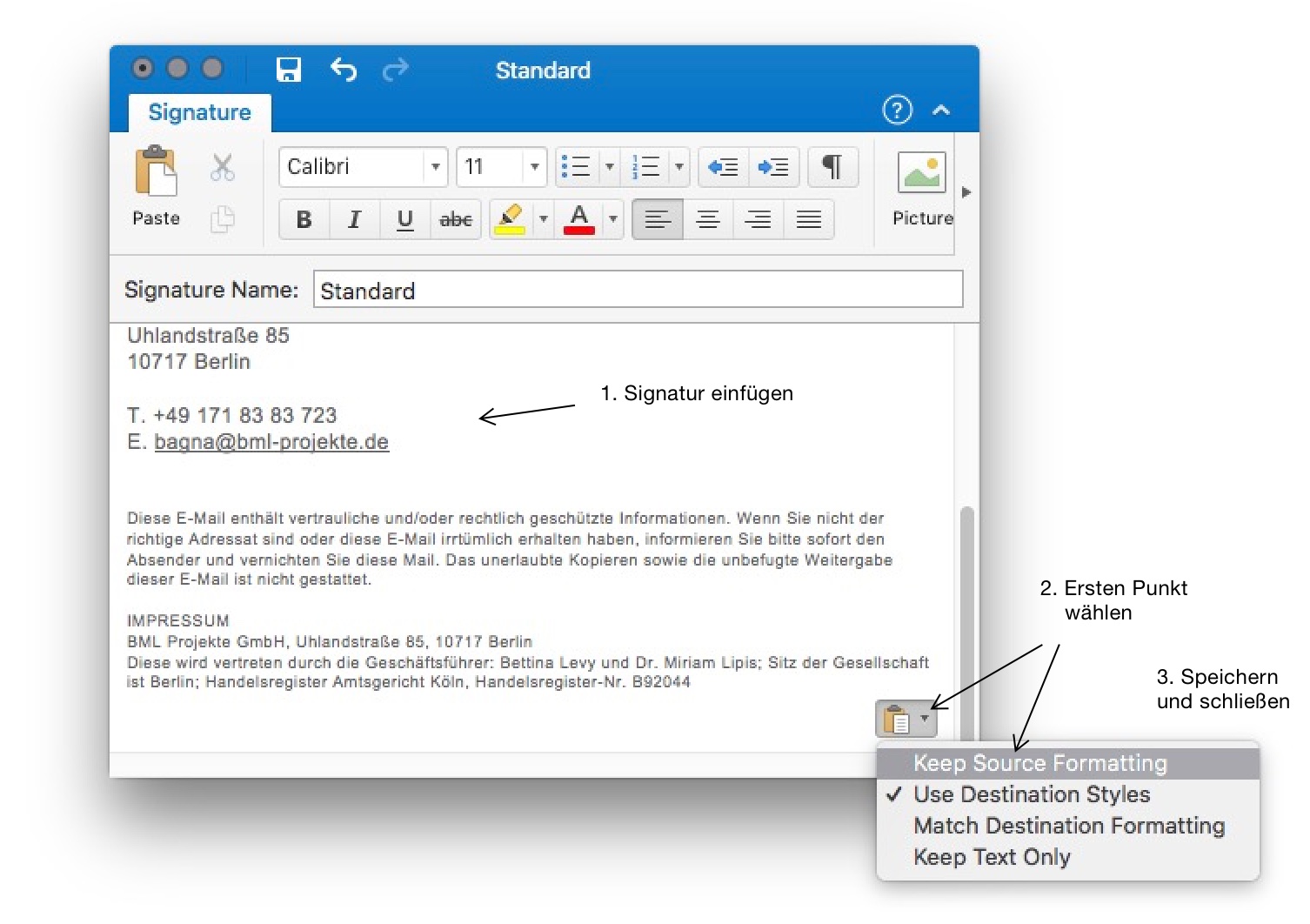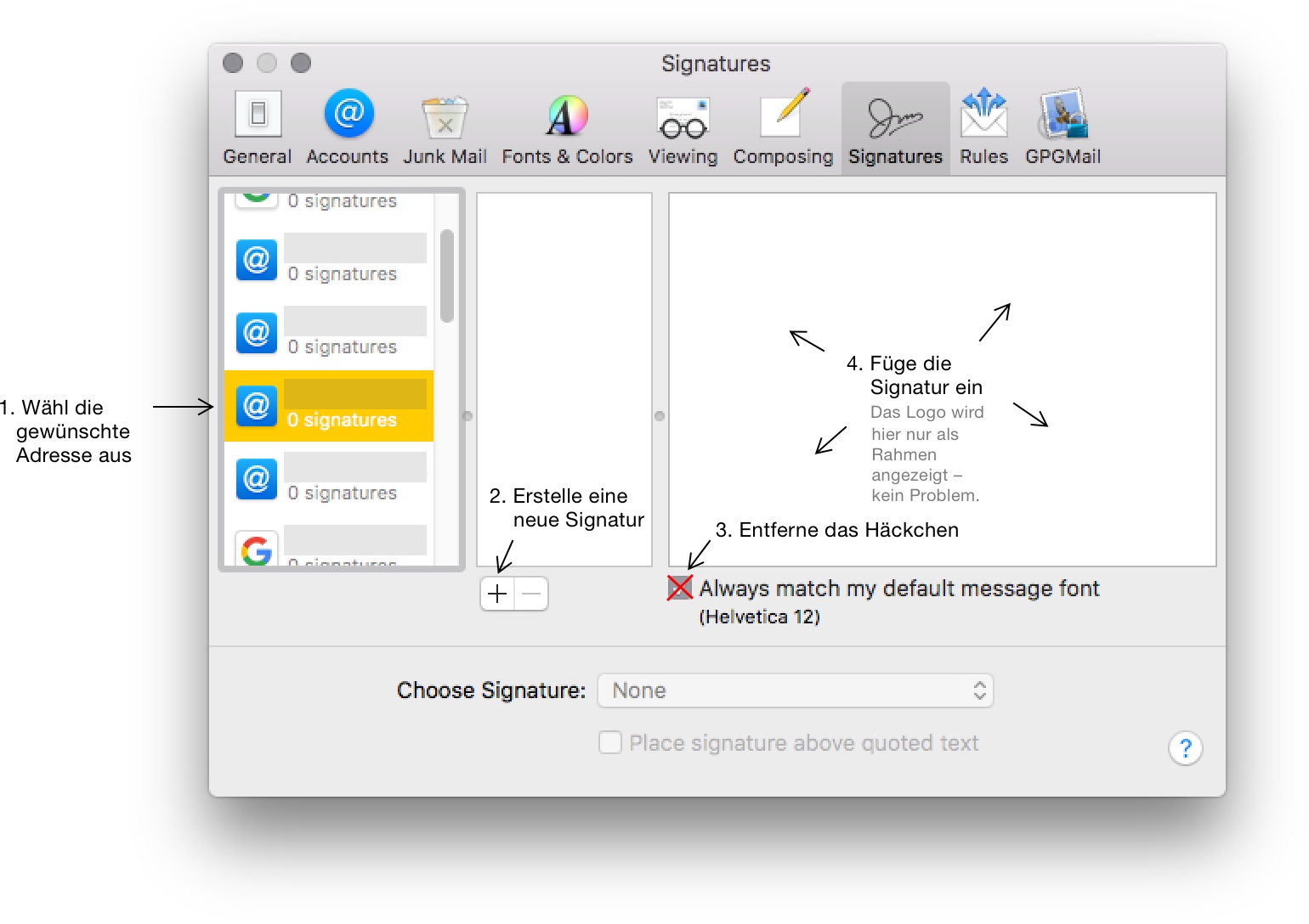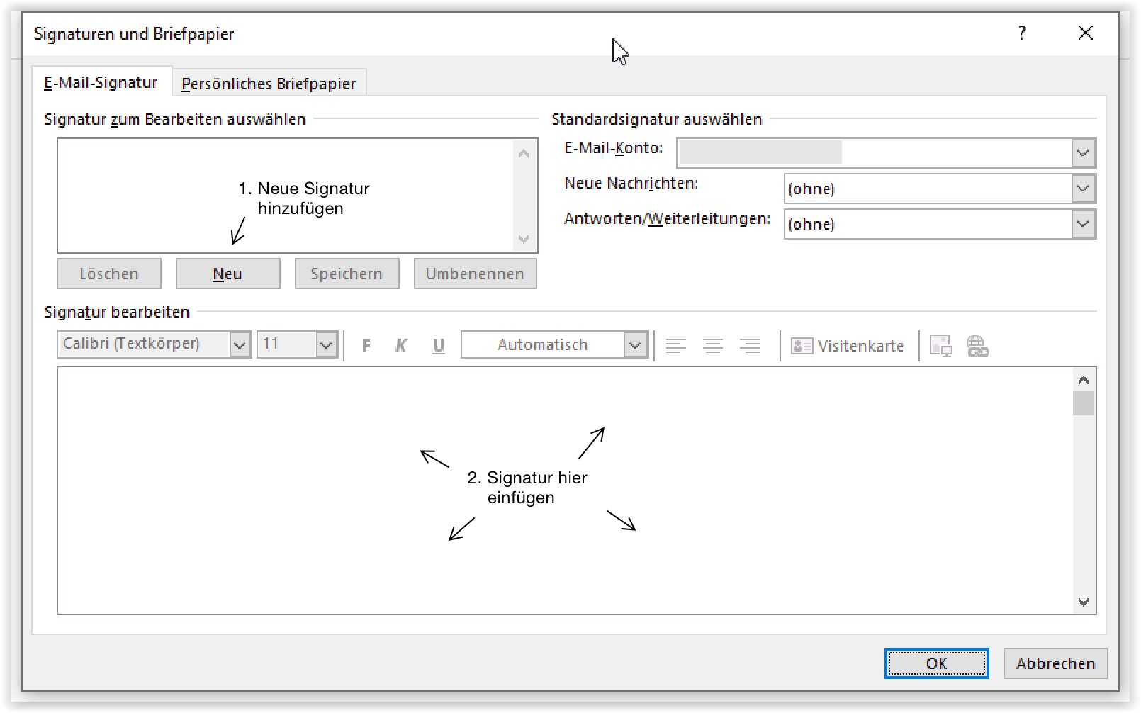 Fügen Sie die Signatur in die Signatur-Einstellungen Ihres E-Mail-Programms ein.