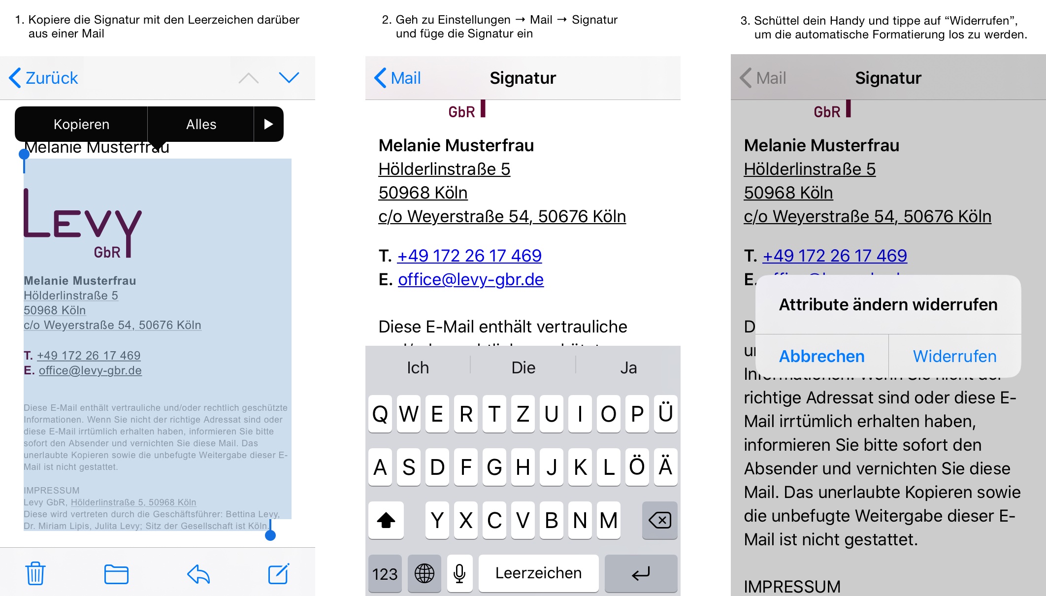 Markieren und kopieren Sie die Signatur oder klicken Sie auf Signatur kopieren, um die Signatur in Ihre Zwischenablage zu kopieren.